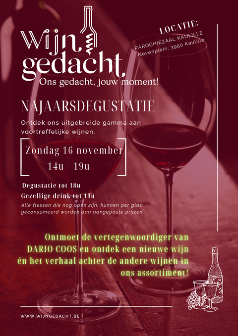 Najaarsdegustatie met uitgebreide gamma aan voortreffelijke wijnen.